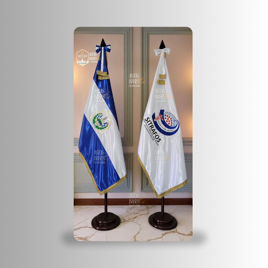Banderas bordadas con gran precisión y detalle, utilizando tecnología computarizada de alta gama, confeccionadas sobre telas de alta resistencia y durabilidad. Su acabado impecable y presentación distinguida las convierten en la elección ideal para espacios interiores que buscan presencia y elegancia, como oficinas corporativas, instituciones, embajadas, iglesias y eventos solemnes. Incluyen asta y base para una exhibición majestuosa.